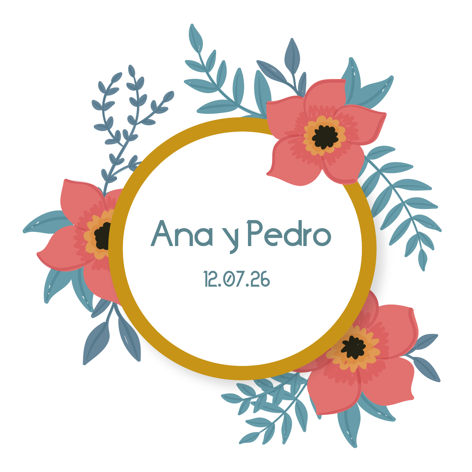 El diseño central presenta una emotiva frase o también nombres o fechas importantes, que es realzada por un bello dibujo floral en intensos tonos. Este patrón no solo añade un toque de pasión, sino que enmarca la dedicatoria con elegancia y romanticismo.