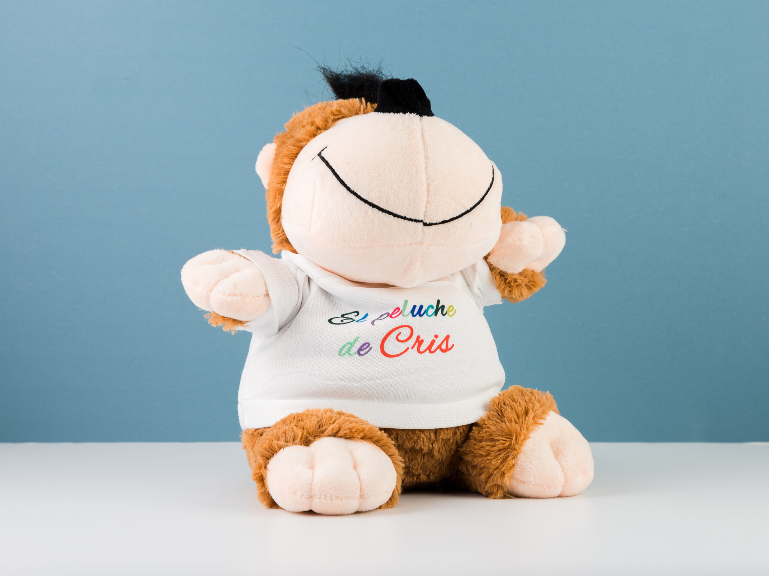¿Buscas un regalo original, tierno y 100% personalizable? ¡Nuestro peluche mono de 21 cm con camiseta personalizada está listo para robar corazones! Este pequeño amigo es perfecto para sorprender en cumpleaños, aniversarios, San Valentín, nacimientos… o simplemente para decir “oye, pensé en ti” de la forma más dulce posible.