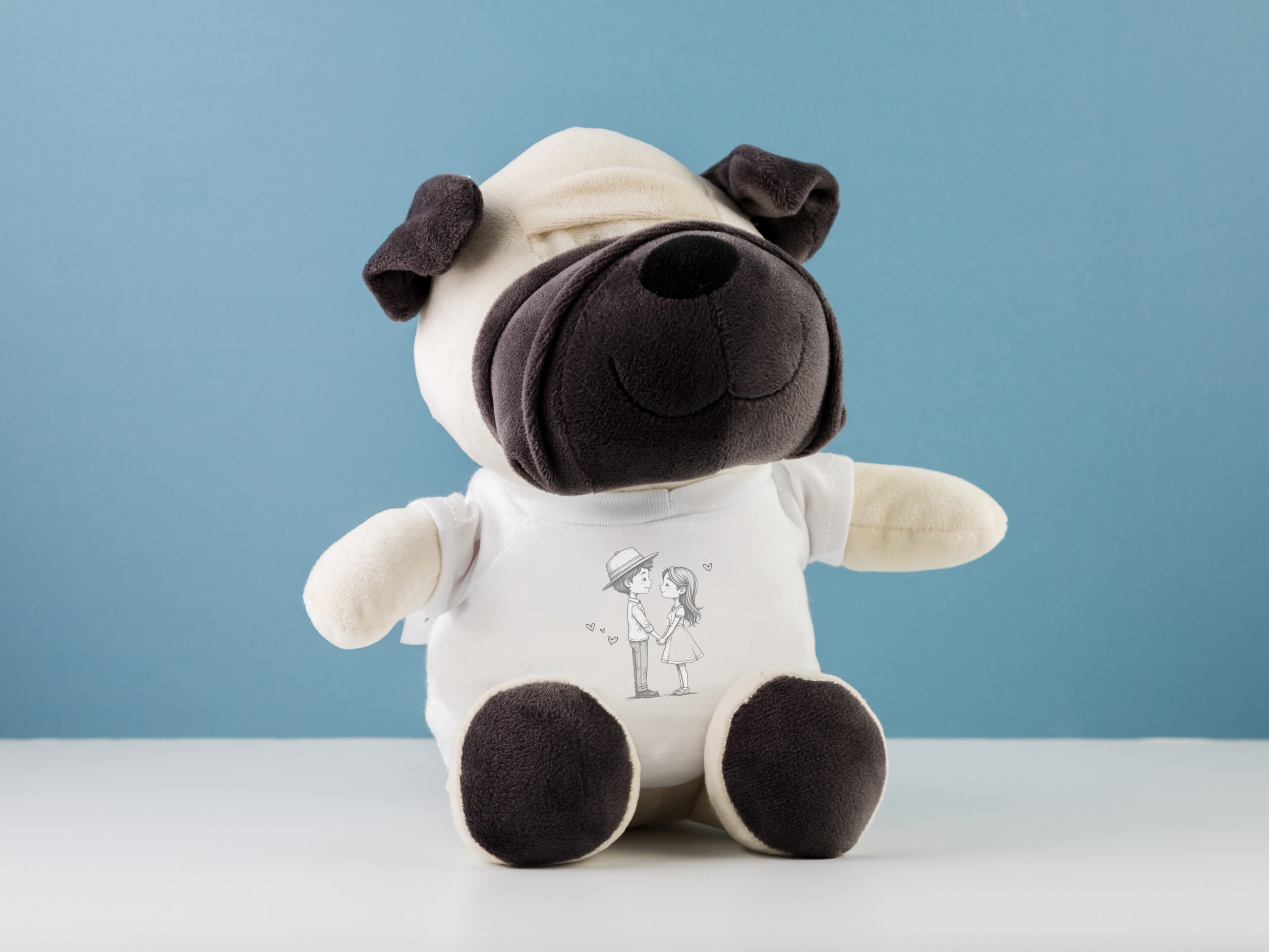 Este peluche perro Pareja es el regalo perfecto para expresar amor de una forma tierna y original. Se trata de un adorable peluche con forma de perro que lleva una camiseta personalizada con un dibujo romántico de pareja, diseñado especialmente para celebrar el amor en San Valentín.