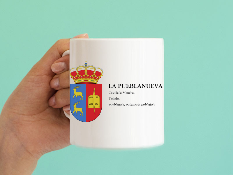 Taza de La Pueblanueva: Cerámica Premium con Escudo.