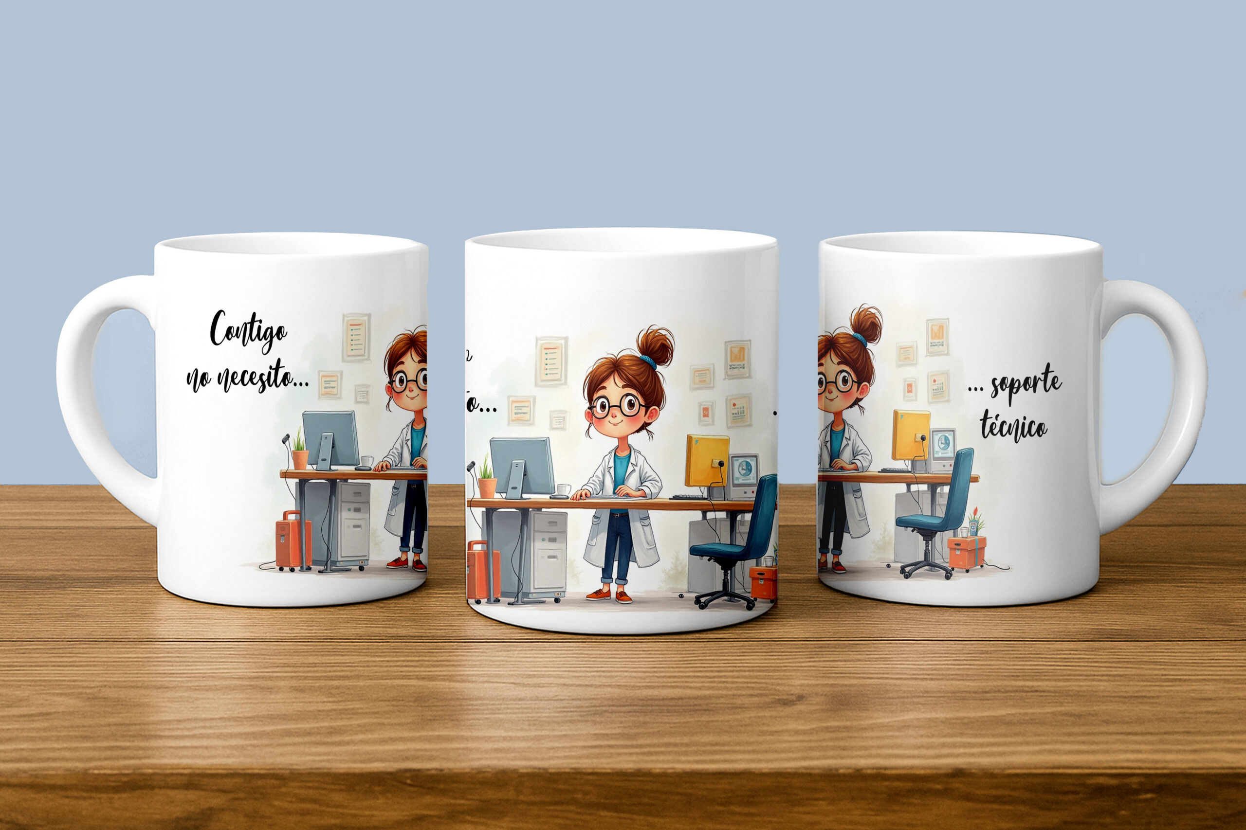 Personaliza la tuya ahora y lleva tus sistemas a cada sorbo o compra nuestra taza divertida “Contigo no necesito soporte técnico”