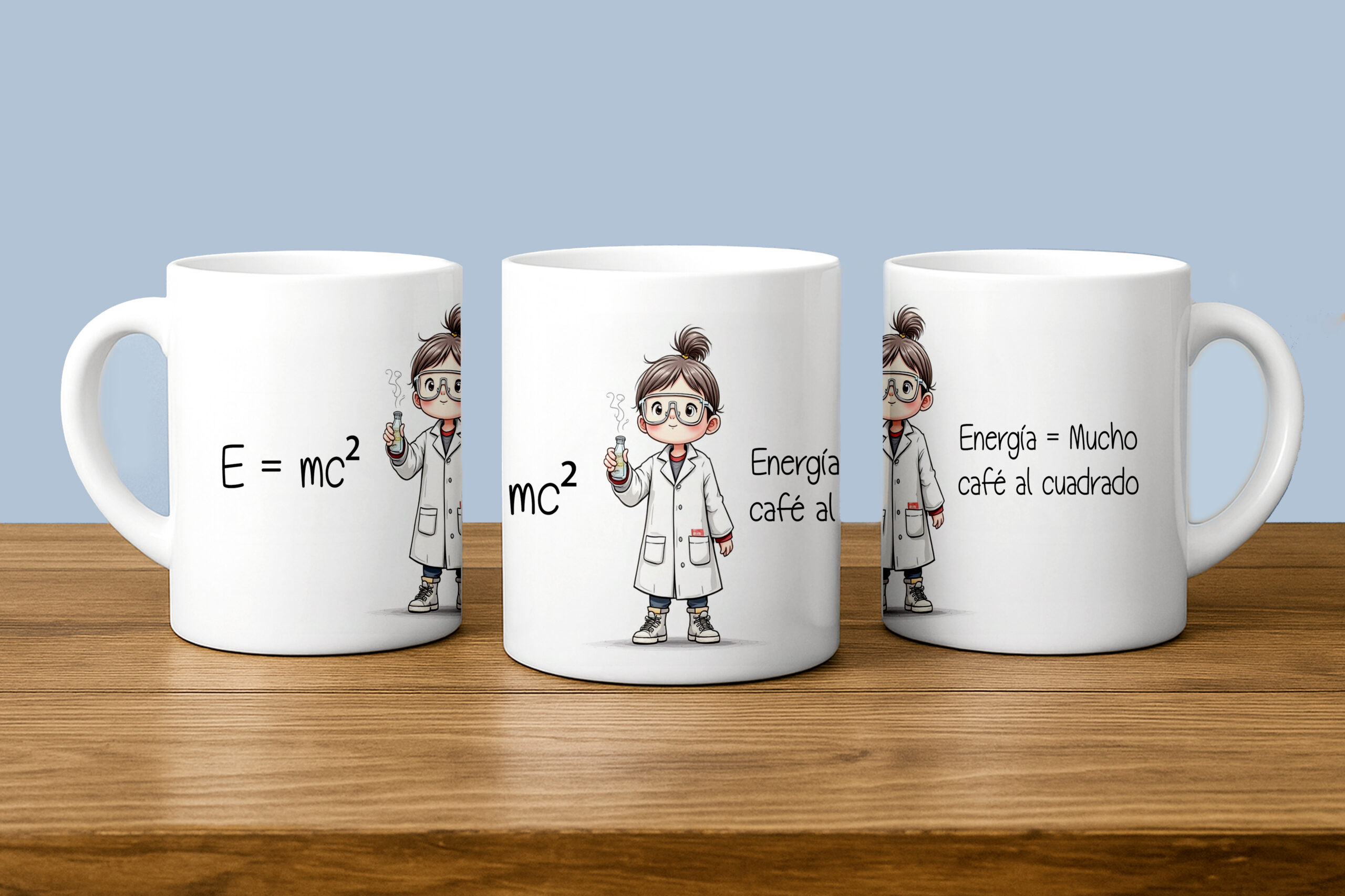 Personaliza la tuya ahora y lleva la ciencia a cada sorbo o compra nuestra taza divertida “Energía = Mucho café al cuadrado”