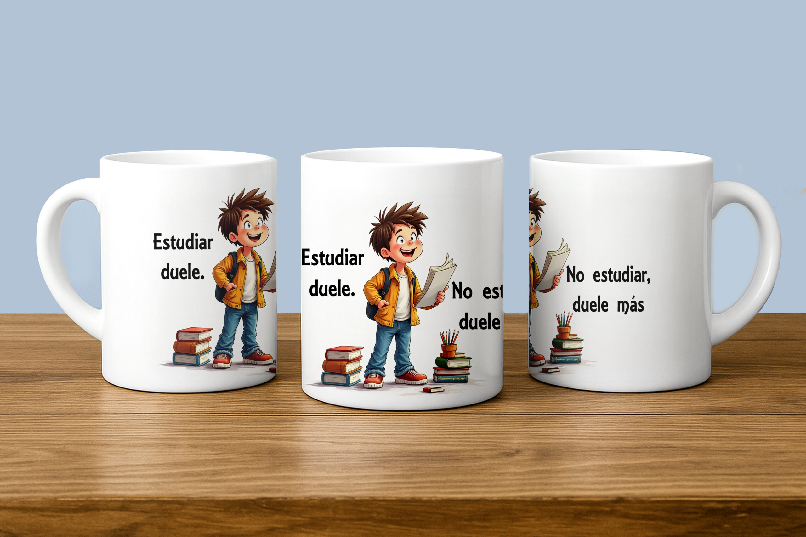 Taza Divertida Estudiar duele… no estudiar, duele más (chico)