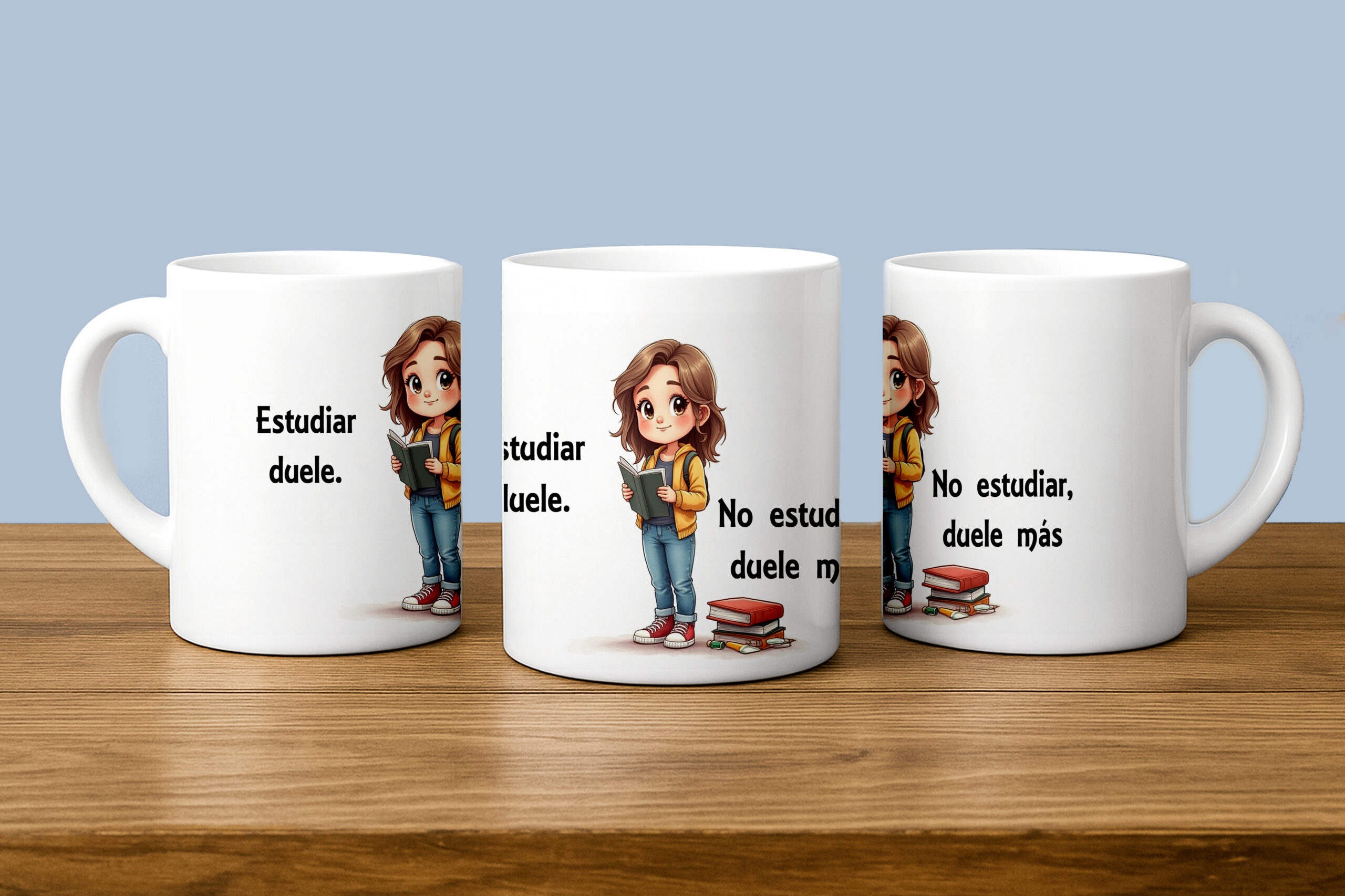 Personaliza la tuya ahora y lleva tus estudios a cada sorbo o compra nuestra taza divertida “Estudiar duele… no estudiar, duele más”