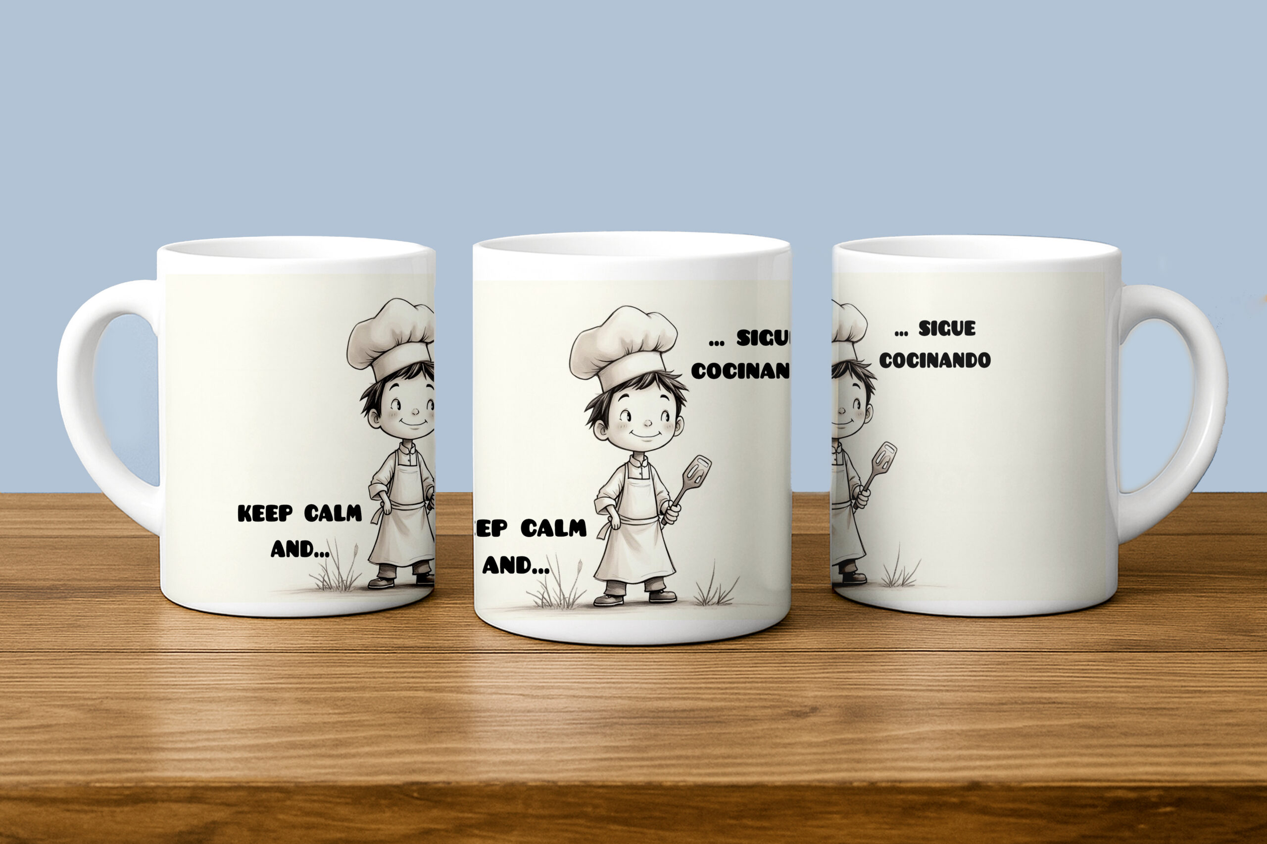 Personaliza la tuya ahora y lleva la cocina a cada sorbo o compra nuestra taza divertida “Keep Calm and… sigue cocinando”