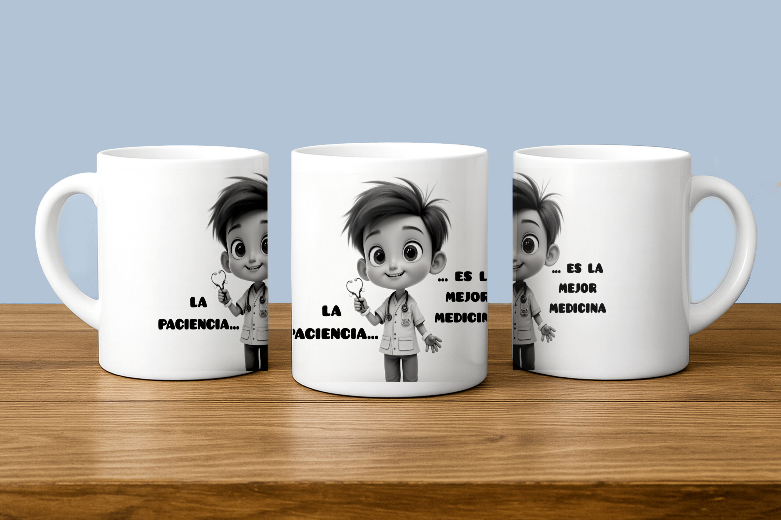 Personaliza la tuya ahora y lleva tus operaciones a cada sorbo o compra nuestra taza divertida “La paciencia es la mejor medicina”