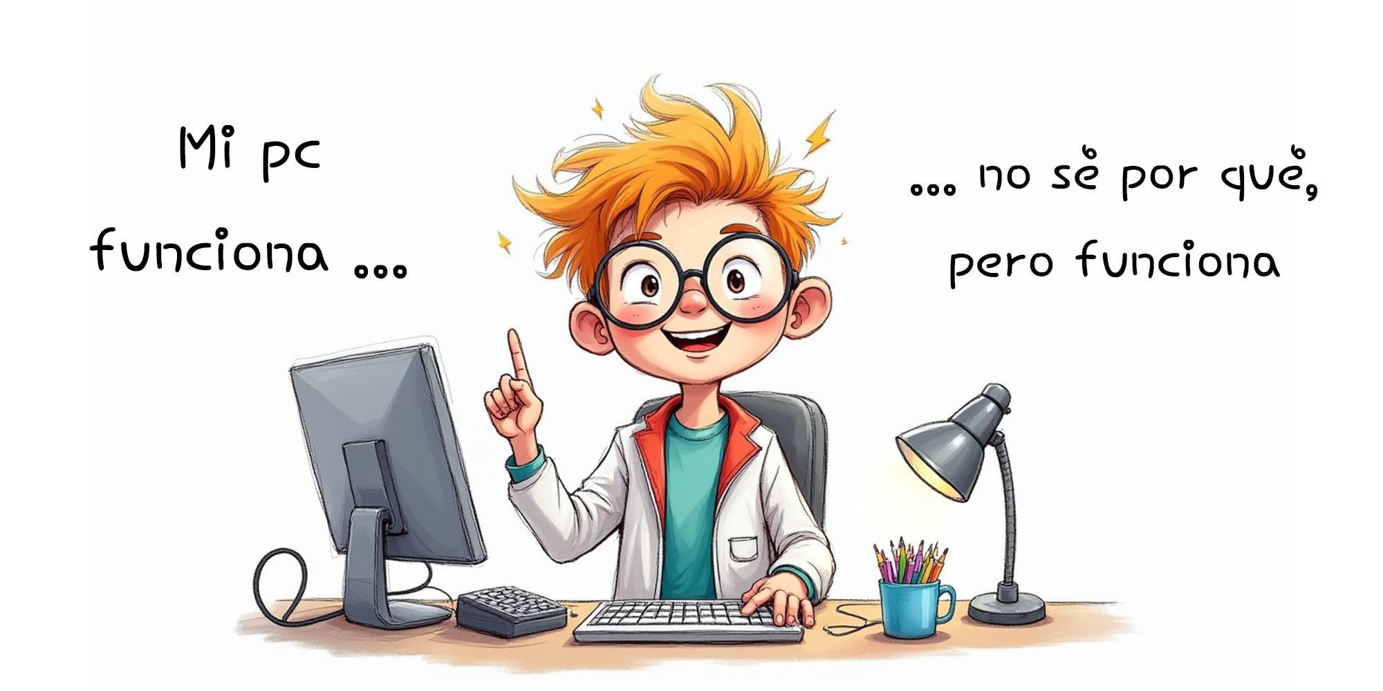 La taza de cerámica perfecta para amantes de la informática con sentido del humor. Diseño exclusivo con la frase en la taza divertida “Mi pc funciona, no sé por qué, pero funciona”. ¡Regalo ideal!