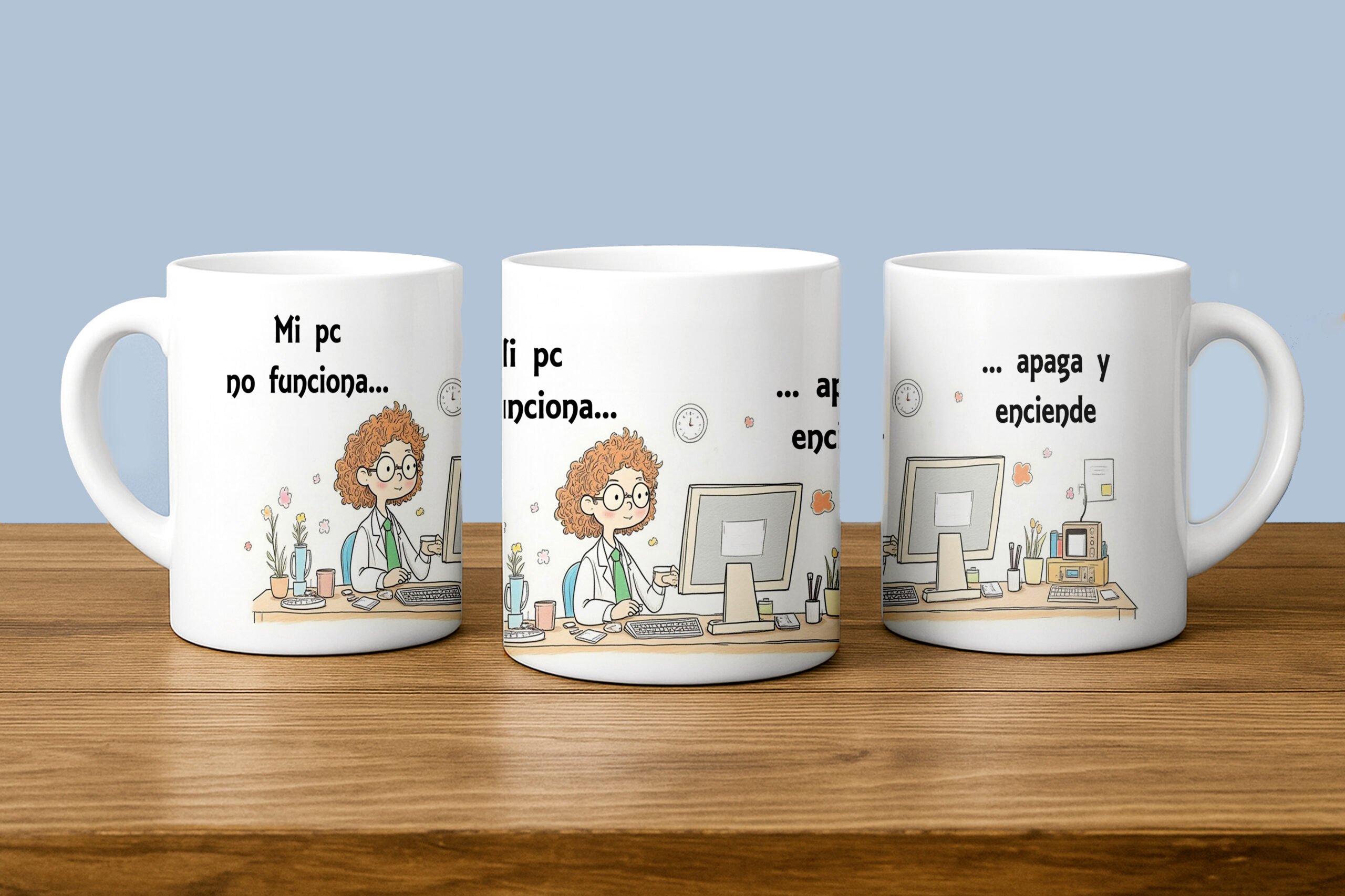 Personaliza la tuya ahora y lleva tus sistemas a cada sorbo o compra nuestra taza divertida “Mi pc no funciona… apaga y enciende”