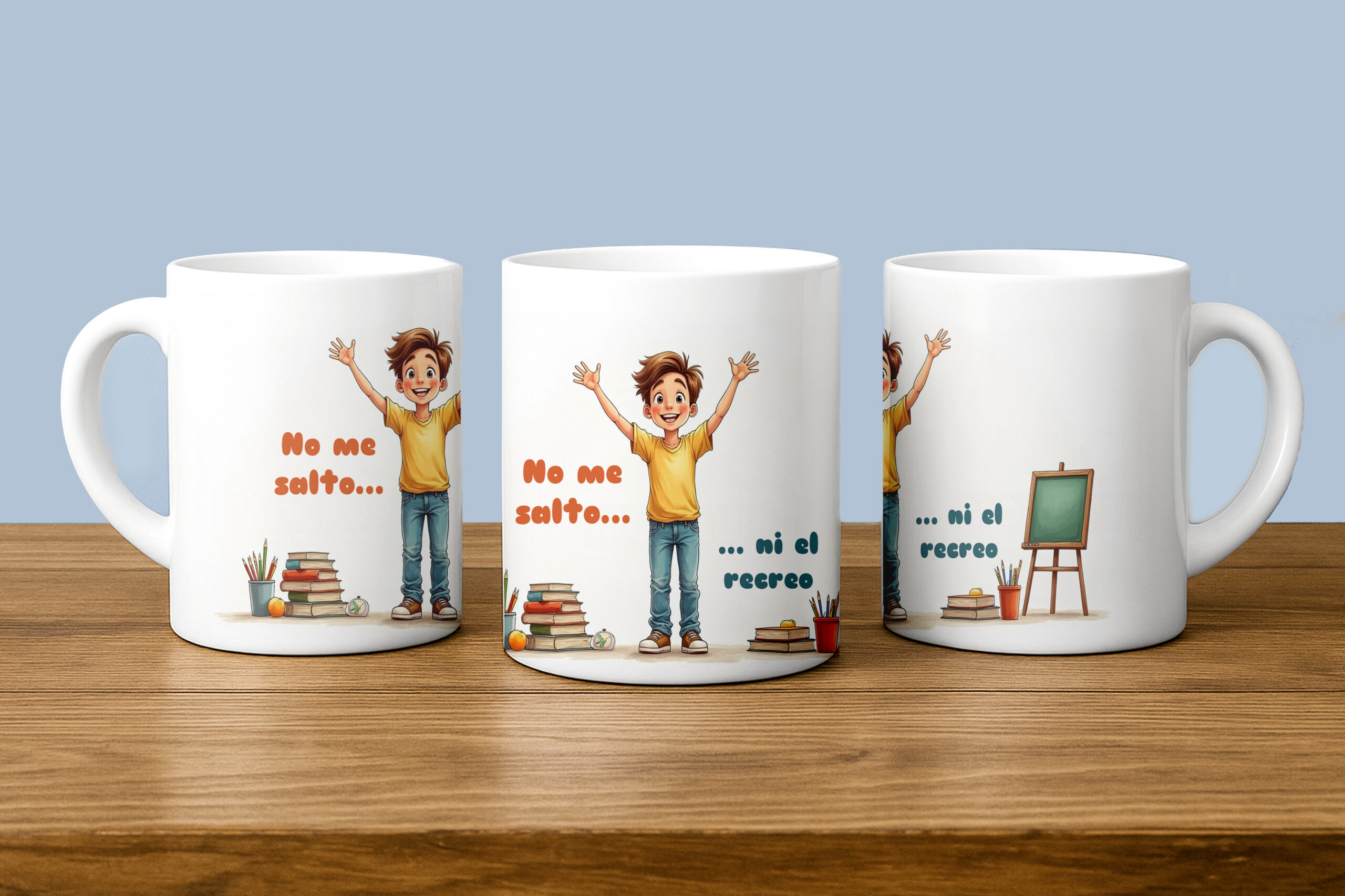 Personaliza la tuya ahora y lleva tus estudios a cada sorbo o compra nuestra taza divertida “No me salto ni el recreo”