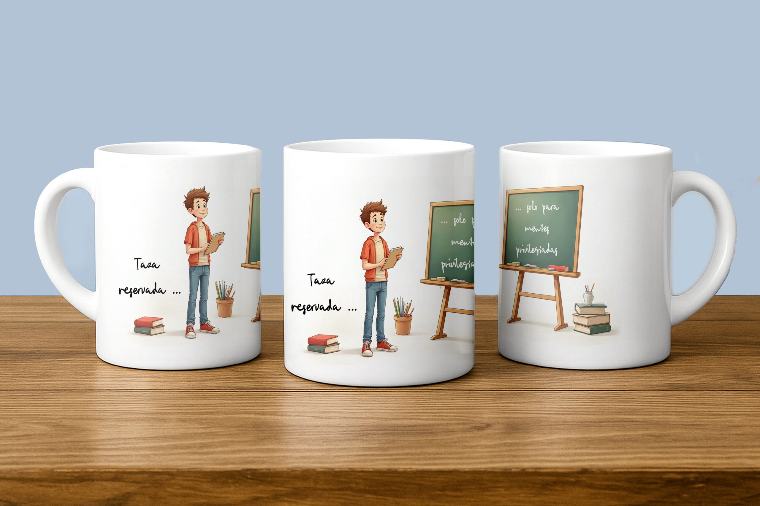Personaliza la tuya ahora y lleva tus estudios a cada sorbo o compra nuestra taza divertida “Taza reservada… solo para mentes privilegiadas”