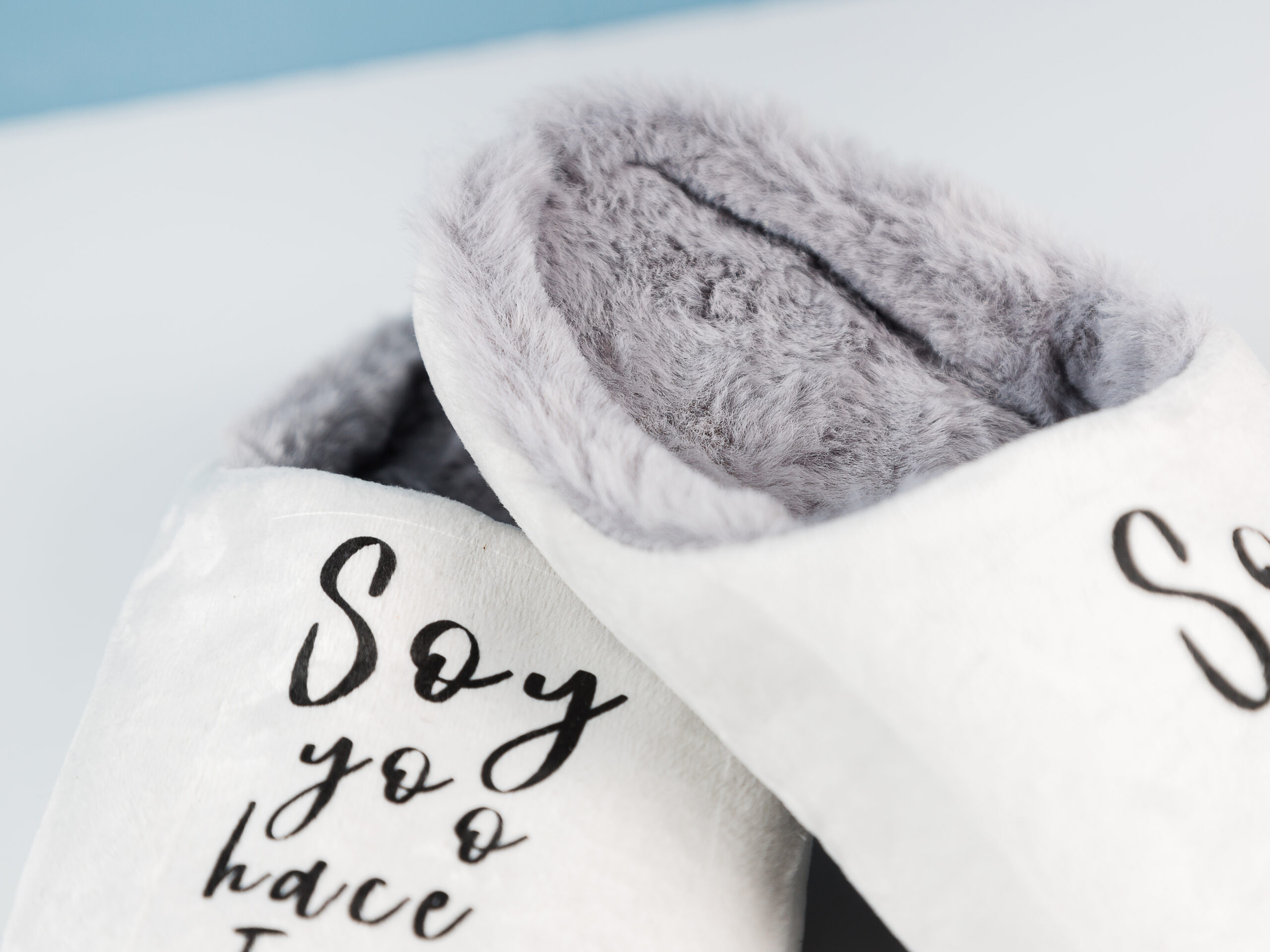 ¿Cansado de las zapatillas aburridas? Nosotros también. Por eso, te ofrecemos la posibilidad de personalizar tus zapatillas de estar por casa con la frase, mensaje, o cita que elijas. Desde un divertido “Modo Relax Activado” o “Aquí Manda [Tu Nombre]” hasta un emotivo “Hogar, Dulce Hogar”, tú pones el límite. Son el regalo original y único perfecto para sorprender a un ser querido, para parejas, o simplemente para recordarte a ti mismo cuál es el mejor momento del día.